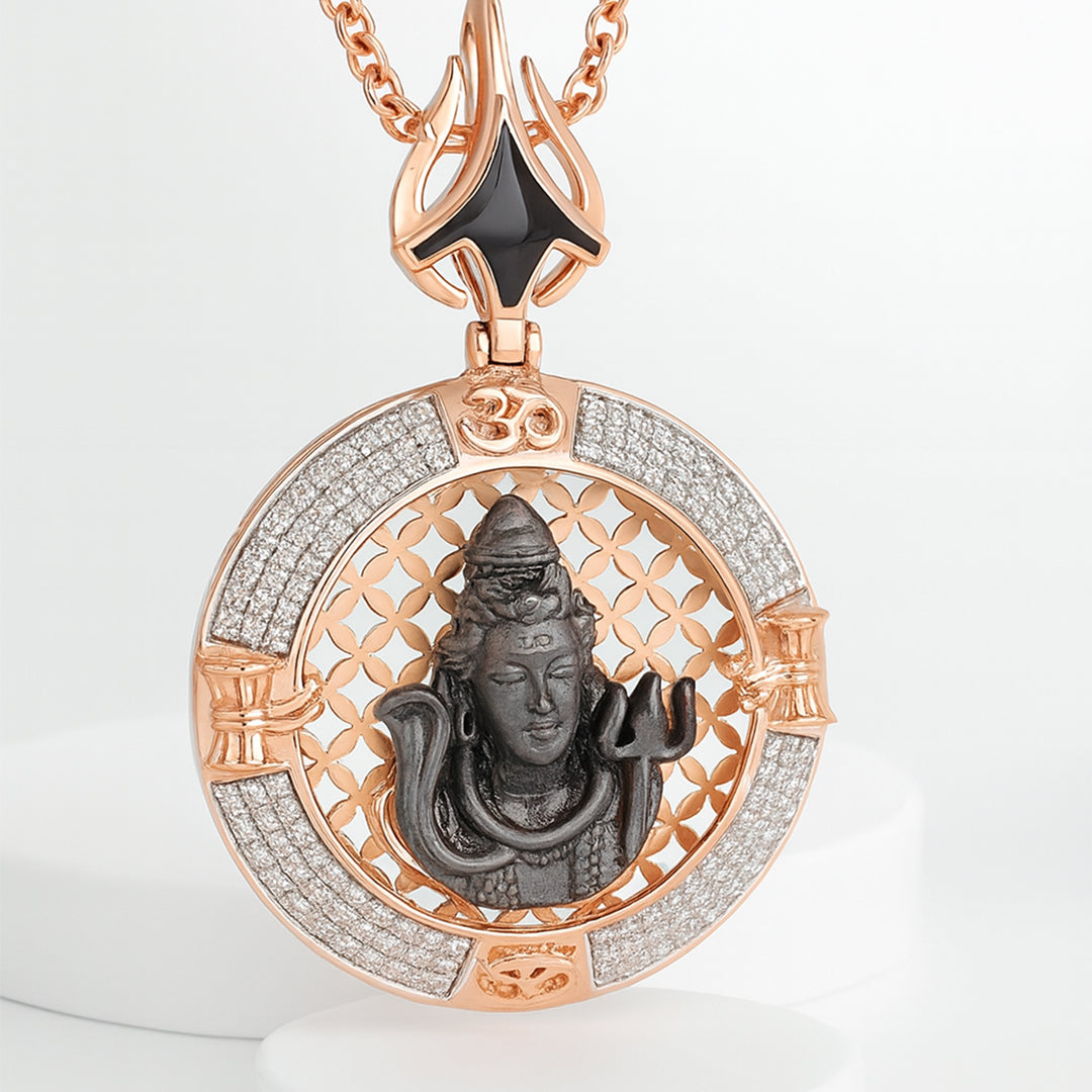 Lord Shiva Men Pendant with American Diamonds – Round Rose Gold Designer Spiritual Jewelry