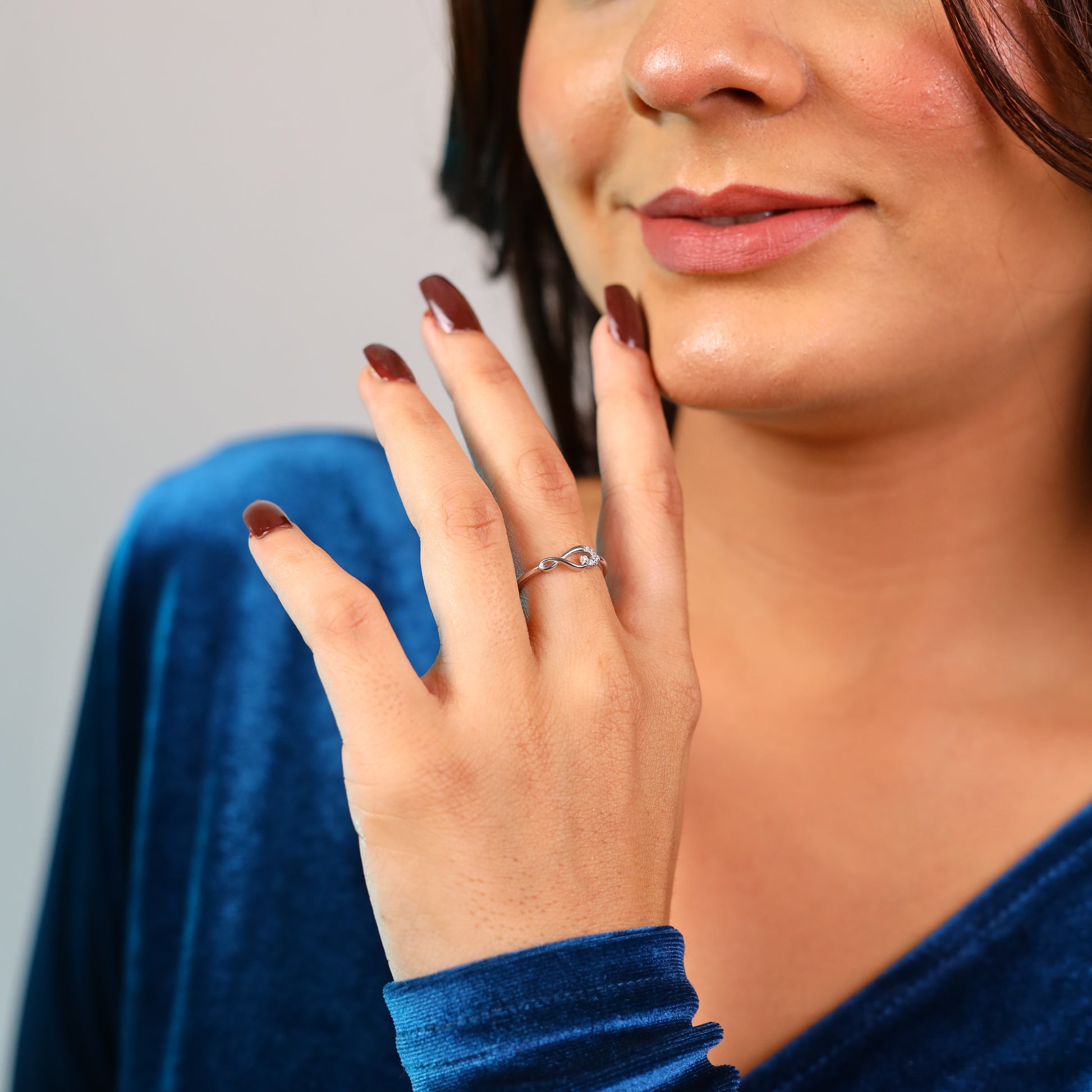 The graceful infinity twist design symbolizes love, unity, and eternity, enhanced with shimmering pavé-set Moissanite diamonds that reflect exceptional brilliance from every angle.This ring is ideal for everyday elegance or special occasions, making it a meaningful gift for someone special.