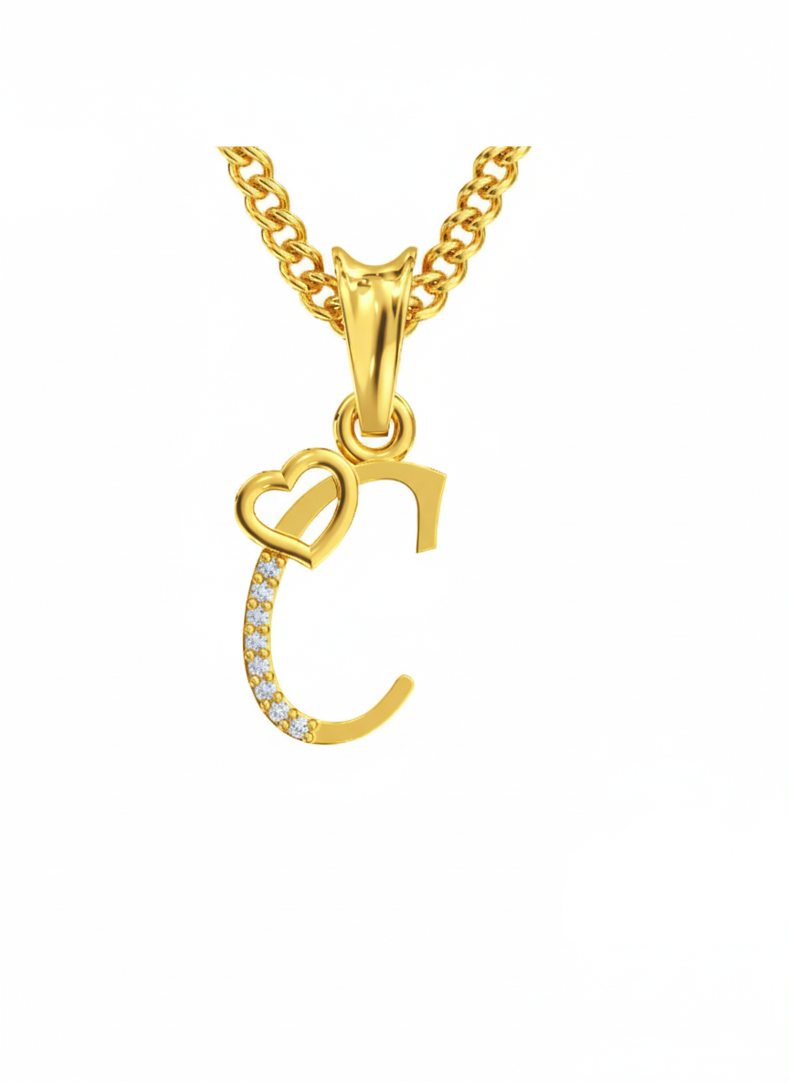 Upgrade your jewellery collection with this elegant Gold Alphabet “C” Initial Pendant, designed with a beautiful heart-shaped curve and sparkling Moissanite diamonds. Crafted with precision and finished in high-polish gold, this pendant is perfect for daily wear or gifting to someone special whose name begins with C.