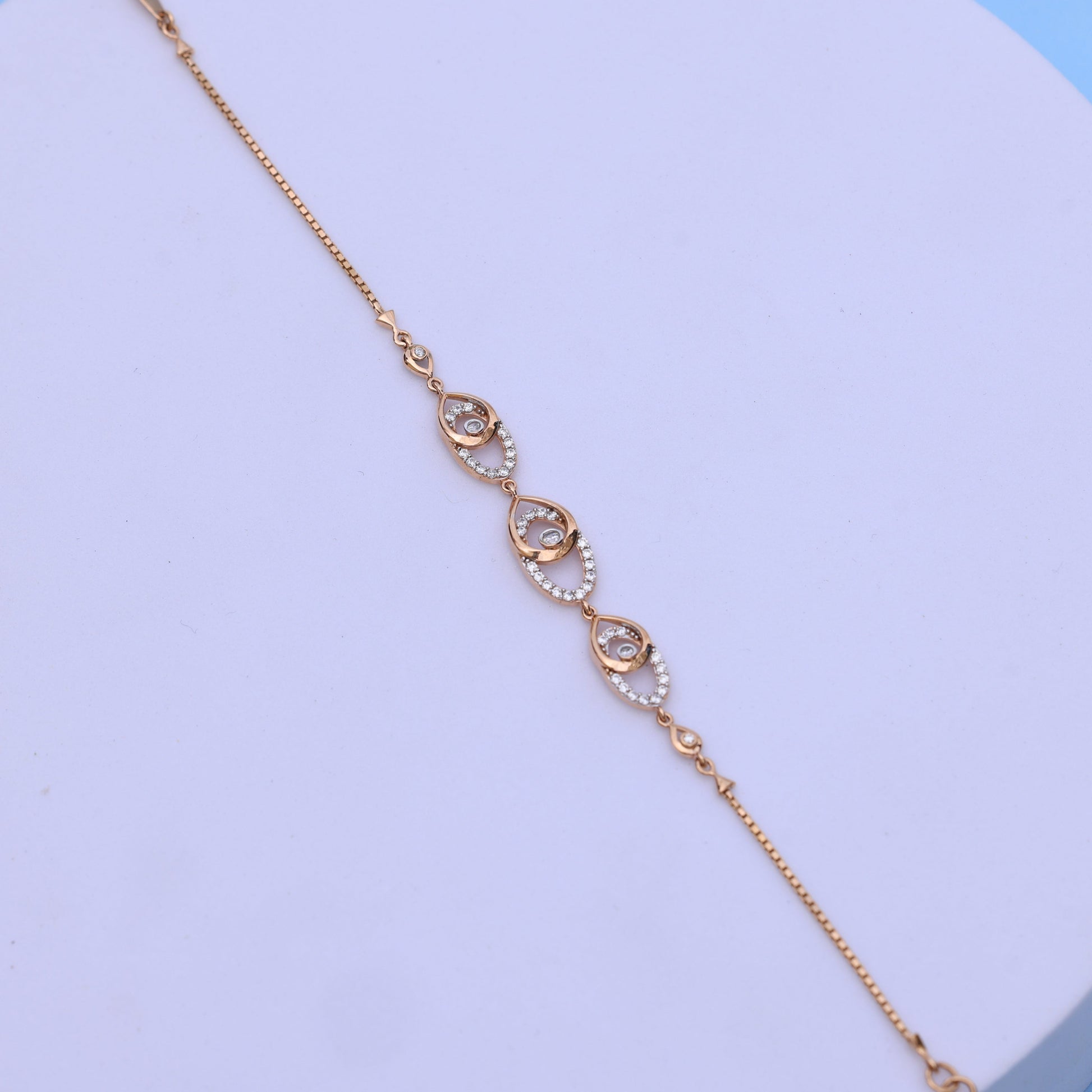 Showcase timeless beauty with this graceful gold plated bracelet, featuring a series of teardrop-shaped charms studded with sparkling American diamonds. Each charm is intricately crafted with a central stone surrounded by fine detailing, giving it a refined and feminine appeal. Light on the wrist, yet rich in elegance – perfect for any occasion. LBC-6031
