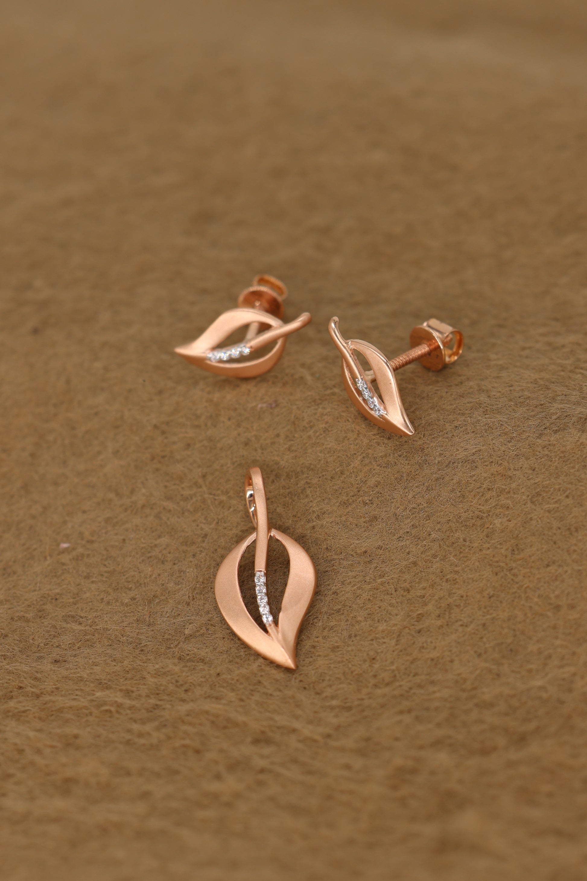 The shimmering American diamonds enhance the organic curves of the design, making this set perfect for both casual elegance and special occasions. The warm hue of the rose gold beautifully complements the brilliance of the diamonds, making this a standout piece that will elevate any outfit.