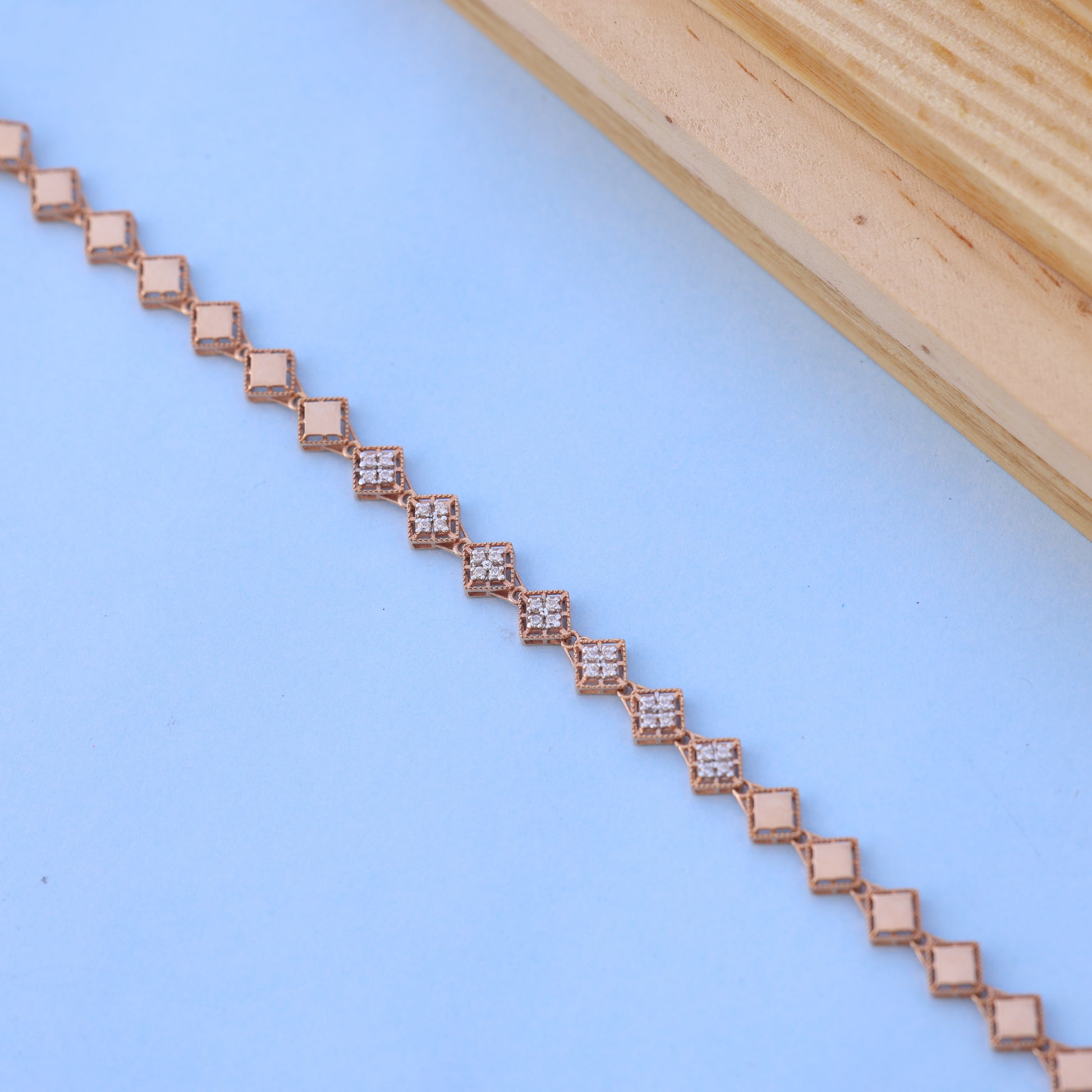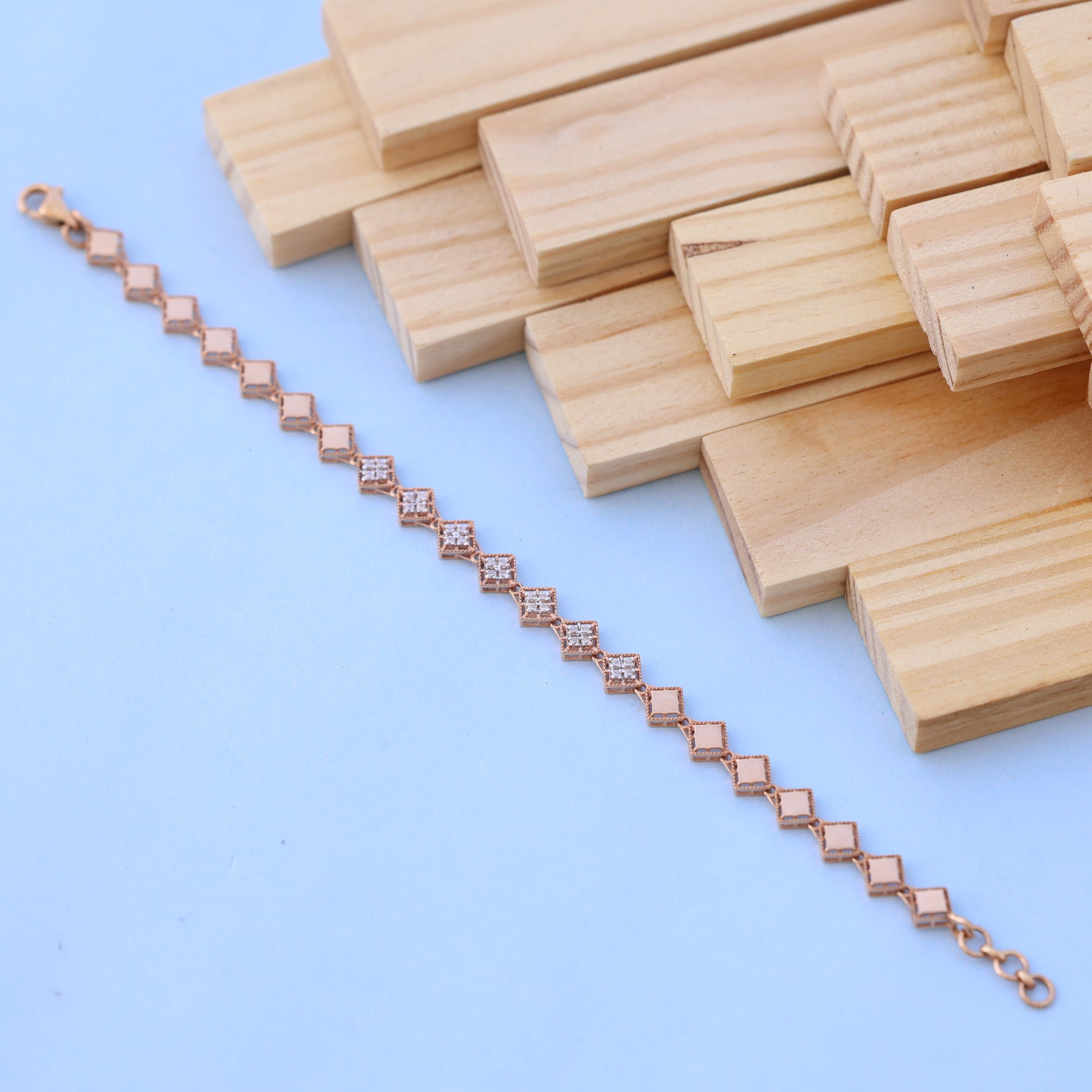 Add a touch of geometric elegance to your jewelry collection with this stunning square-link bracelet, adorned with glittering American diamonds. A perfect piece for both everyday sophistication and special moments. LBC-1646