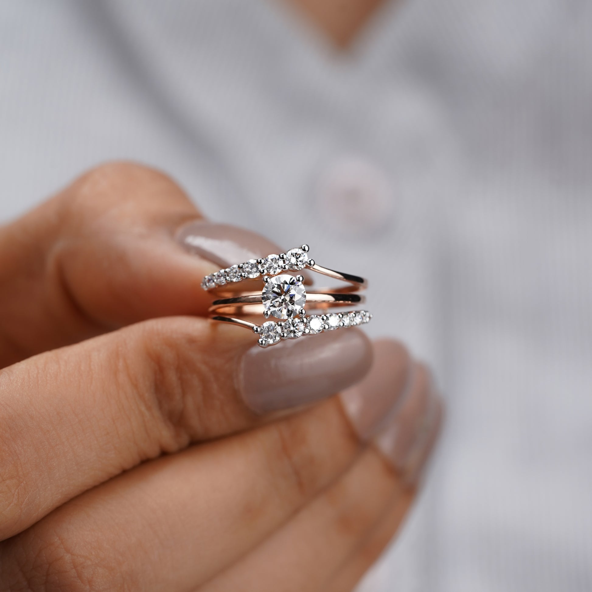 This stunning ring features a brilliant Round Cut Moissanite Diamond, set in a modern crossover design. Crafted with premium-quality metal and finished in beautiful rose gold tone, this ring offers exceptional sparkle and luxury at an affordable price.