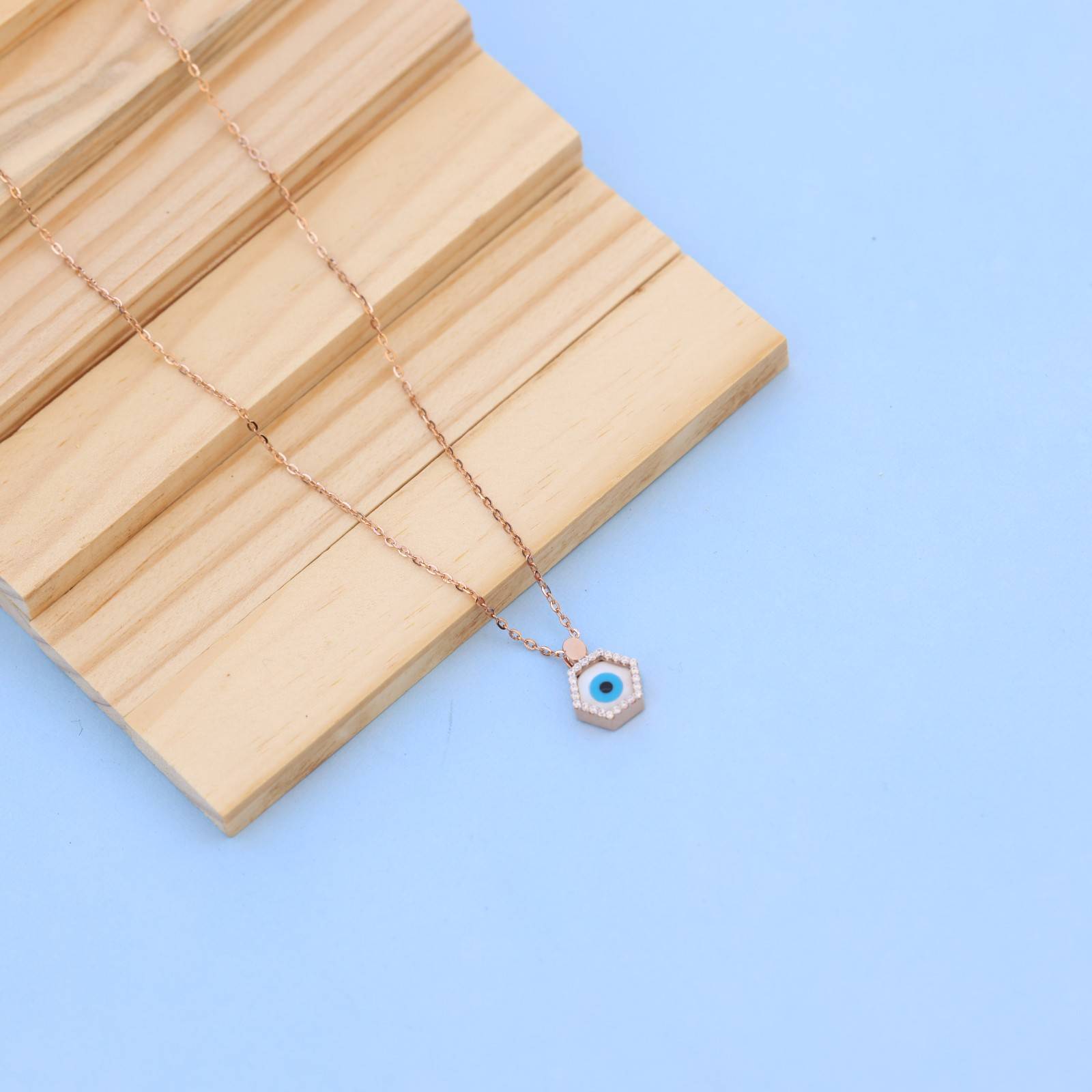 Elevate your jewelry collection with this stunning necklace, meticulously designed to capture hearts. The hexagonal pendant, featuring a striking blue centerpiece, is surrounded by a radiant halo of American diamonds. Known for their brilliance and affordability, these sparkling stones add a touch of luxury, making the necklace both glamorous and versatile.