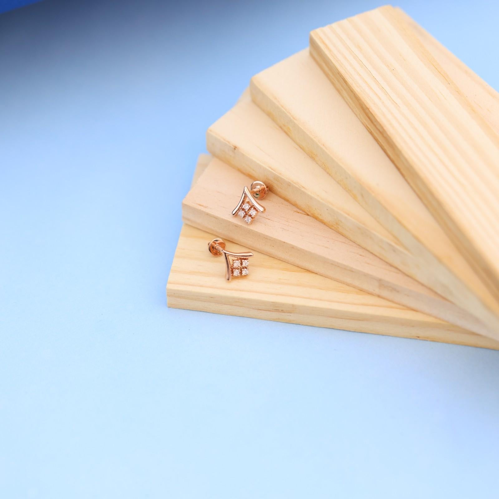 Experience the epitome of elegance with these exquisite rose gold earrings from Nakrani Gold. Crafted with meticulous attention to detail, these earrings showcase an alluring design that embodies sophistication and luxury. The captivating square-shaped clusters are adorned with Lab grown diamonds, known for their exceptional brilliance and quality.