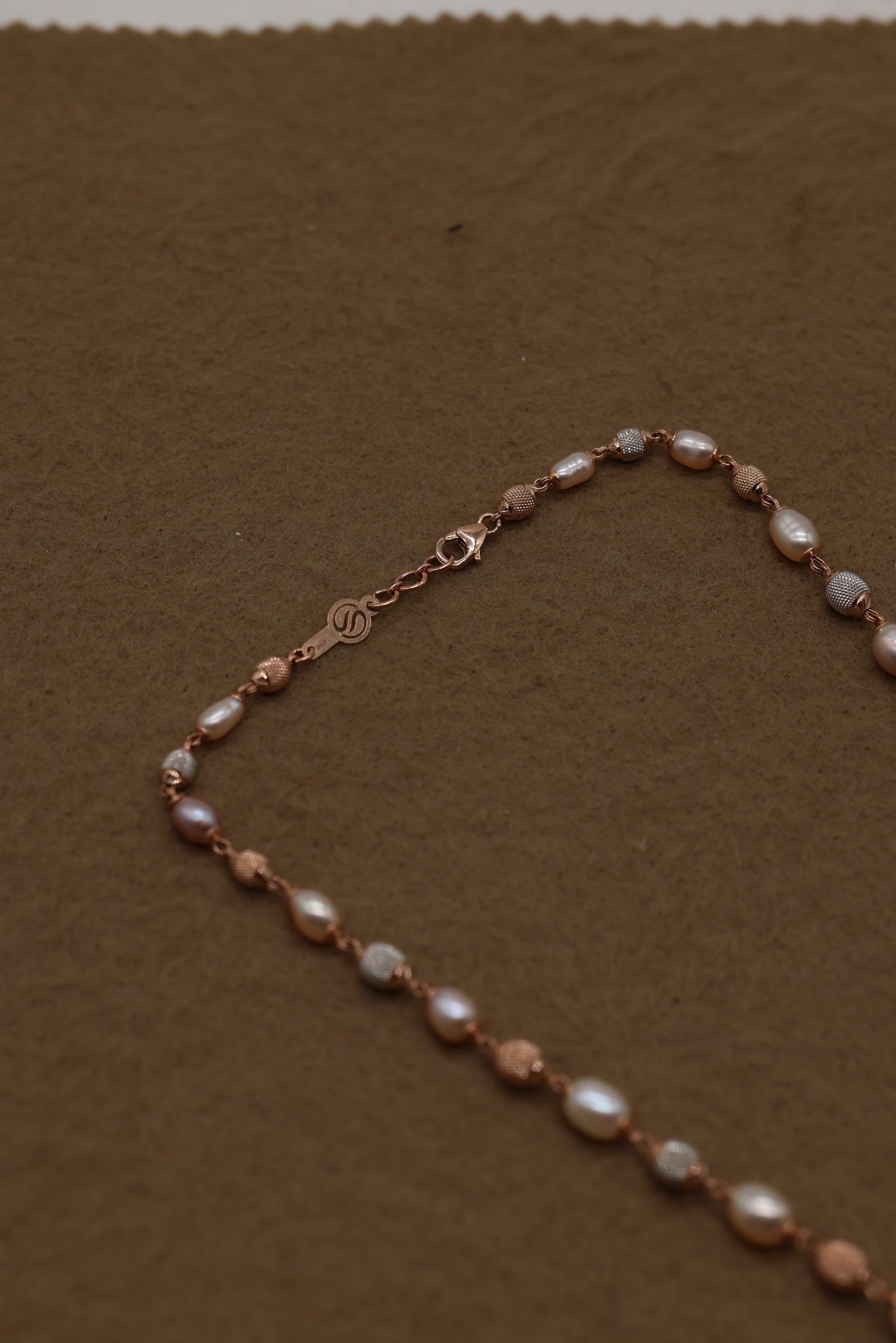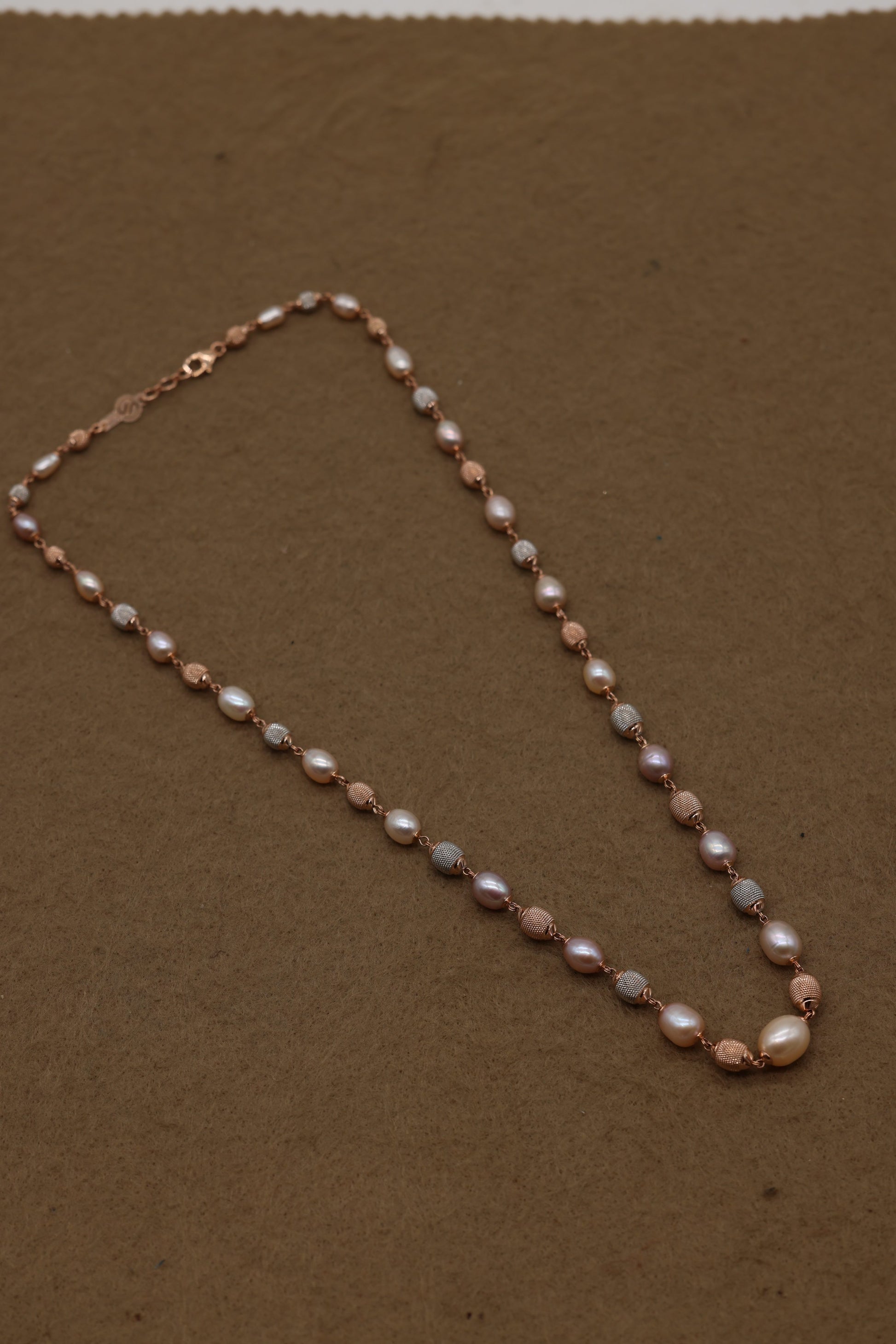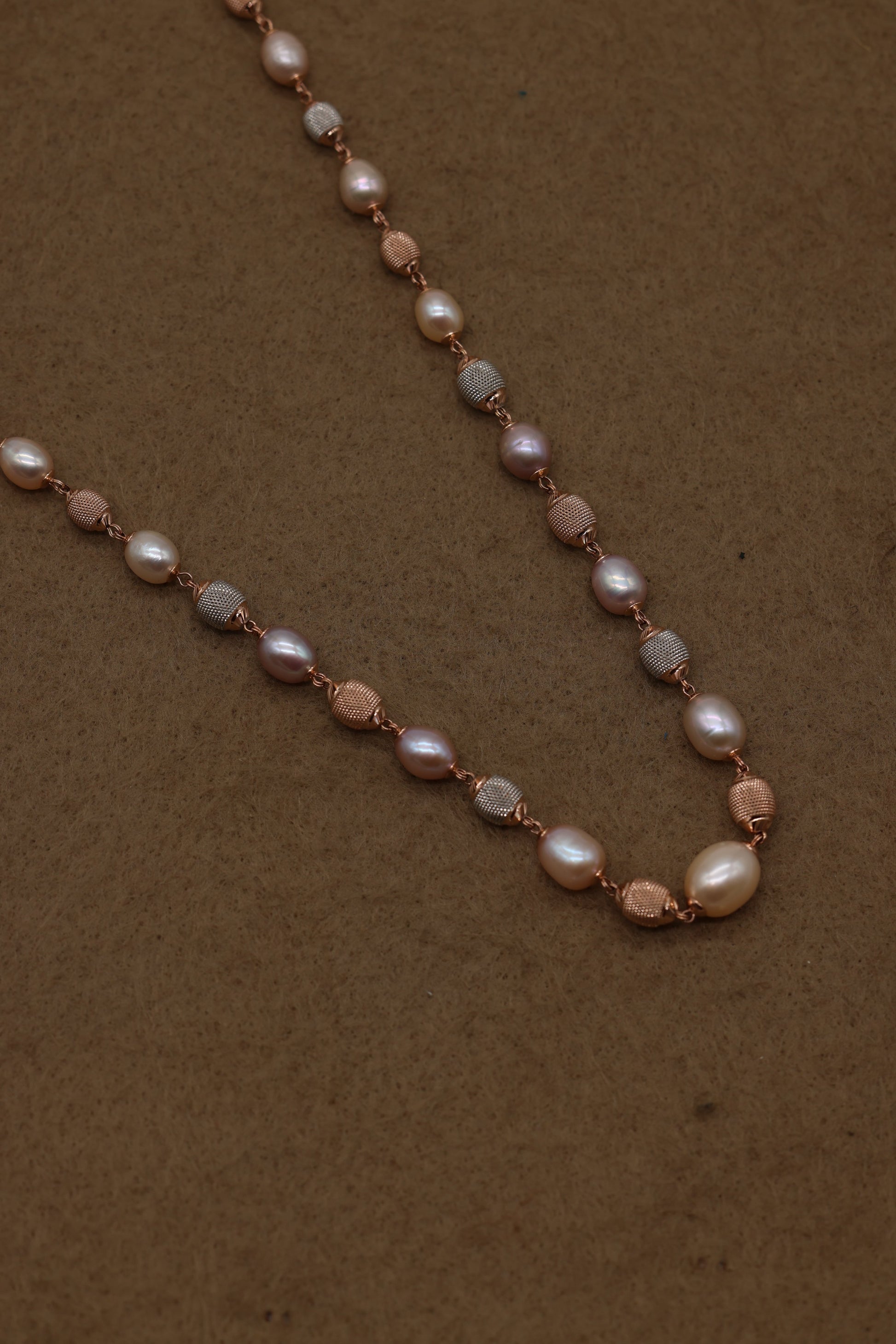 Rose Gold Freshwater Pearl Necklace with Textured Beads